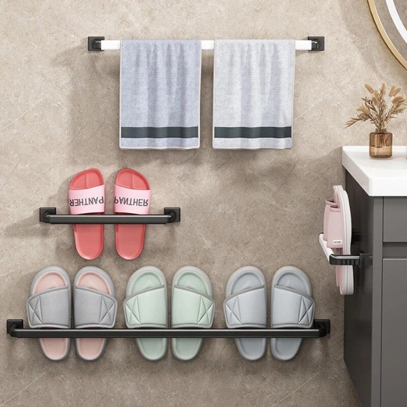 Вешалка для тапочек в ванной комнате Вешалка для полотенец Без перфорации Балконная полка для обуви Самоклеящаяся полка для обуви в гостиной Настенное хранение тапочек