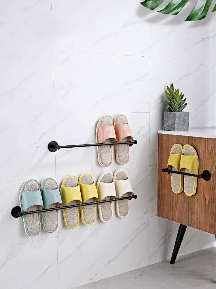 Вешалка для тапочек, вешалка для полотенец, настенная вешалка для хранения обуви, без отверстий, держатель для тапочек из алюминиевого спла...