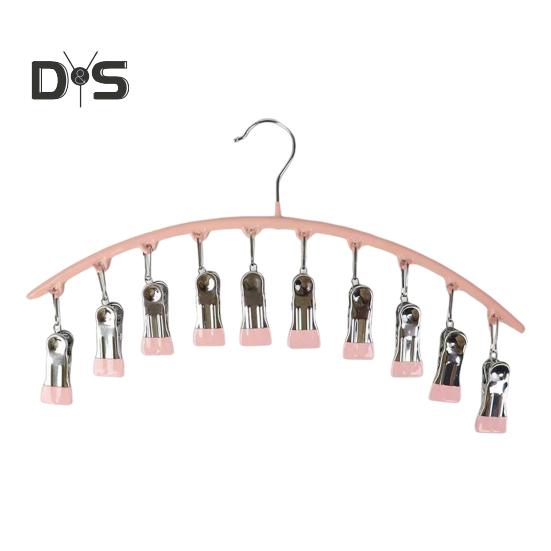 Вешалка для хранения в шкафу с 10 зажимами, большая вместимость, прочная несущая ветрозащитная многофункциональная сушилка для белья розовый