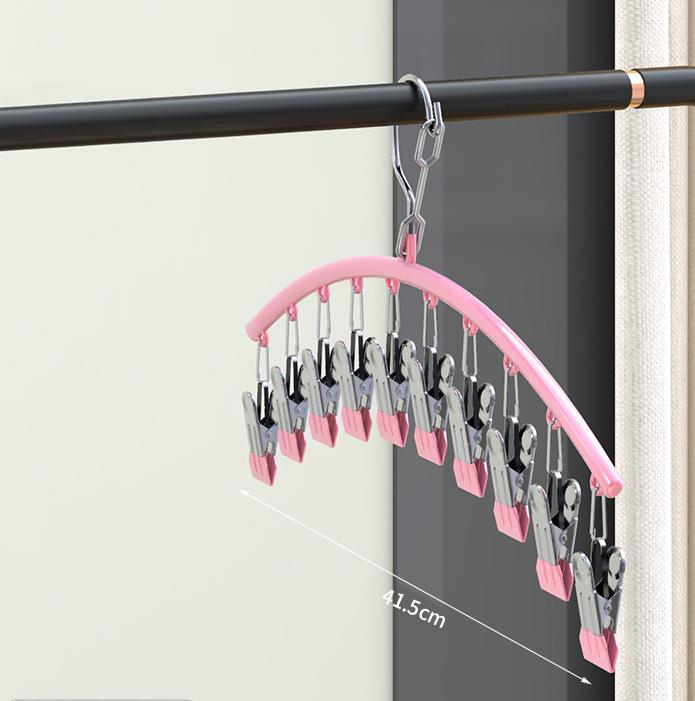 Вешалка изогнутой формы, металлические вешалки для брюк для йоги, вешалка для брюк с 10 прищепками, экономящие место подвесные вешалки, органайзер для шкафа с резиновым покрытием, 1PCS розовый