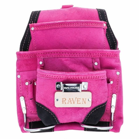 10 Pocket Tool Belt Pouch Heavy Duty Suede Leather Fits Hammer And Nails - Pink