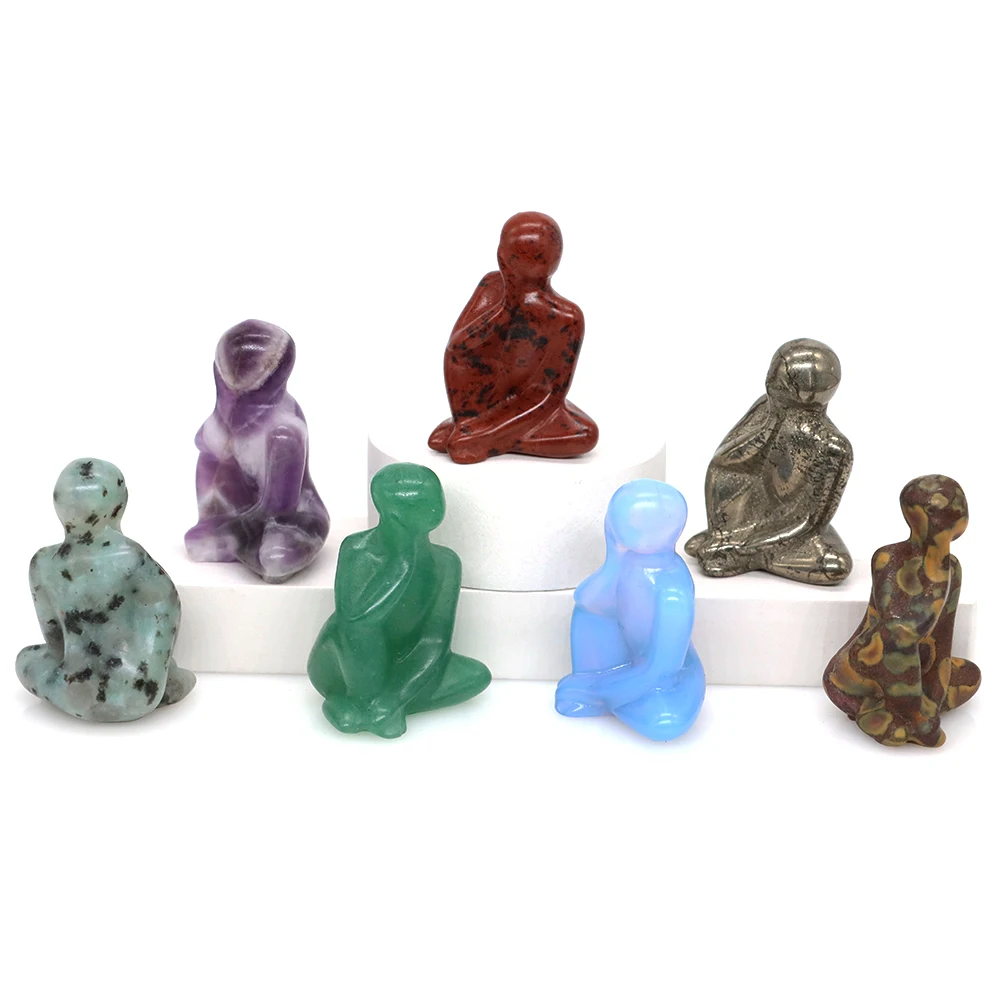 40mm Natural Stone Thinker Statue Healing Crystal Carved Art Abstract Human Body Figurine Ornament Crafts Home Desktop Decor