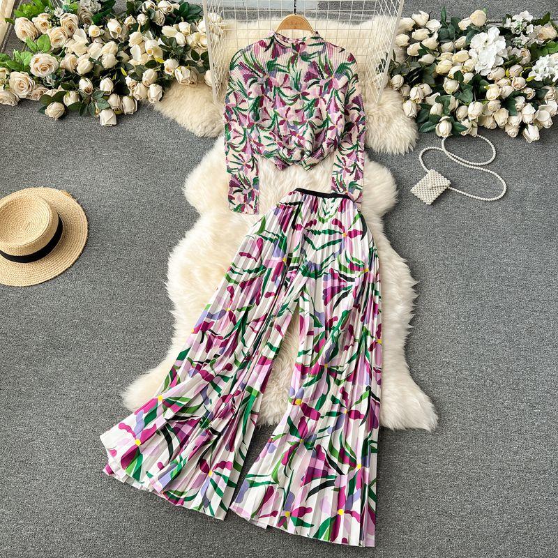 Взрослая Женственная Женщина Доступная Роскошь Длинные Рукава Плиссированный Принт Драпированные Топы Pattern 12 M