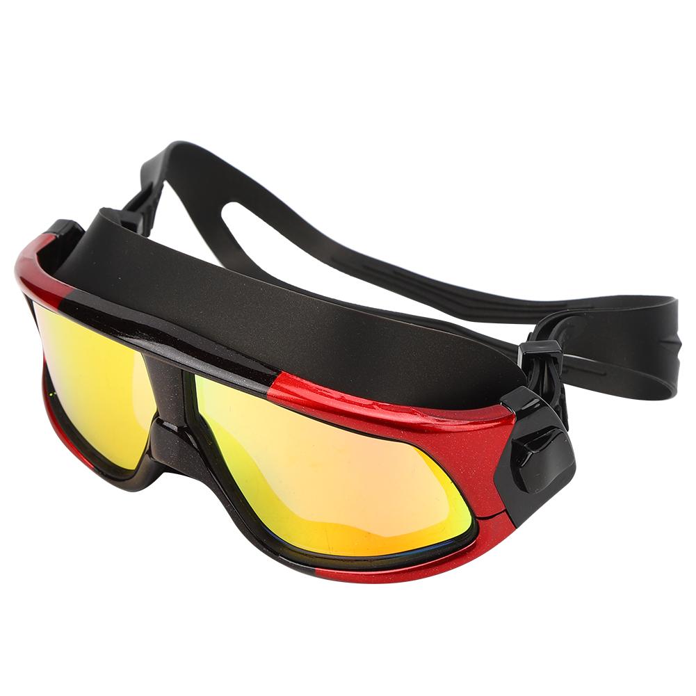 Взрослые водонепроницаемые очки для плавания с защитой от запотевания, с большой оправой, электропокрытие, простое стекло, принадлежности для дайвинга, красно-черные красный черный