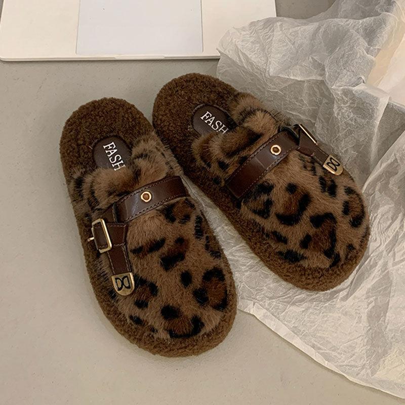 Взрыв популярности интернет-знаменитости леопардовый принт пушистые тапочки женские осенне-зимние новые толстоподошвенные плюшевые с закрытым носком полусапожки хлопковые туфли 40 светло-коричневого