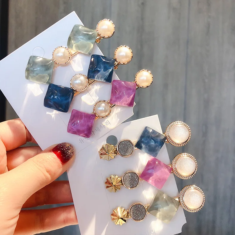 2019 Korea Sweet Transparent Acrylic Resin Square Hairpins For Women Fashion Hair Accessories Imitation Pearl Hair Clips Gifts