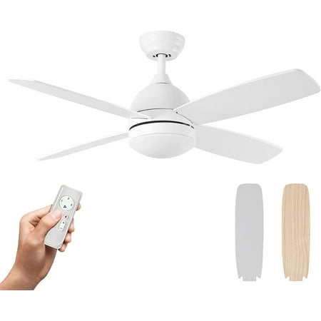 Ceiling Fan with Lights Remote Control 48-Inch Pure White Silent Motor 4-Blades