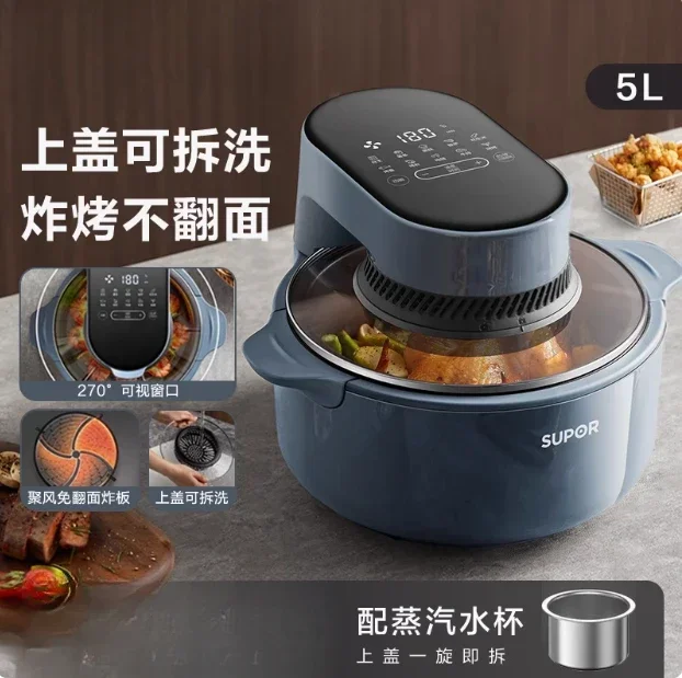 Визуальная фритюрница Supor, 5 л, большая емкость, безмасляная паровая фритюрница, электрическая фритюрница, умная бытовая, не нужно перевернуть