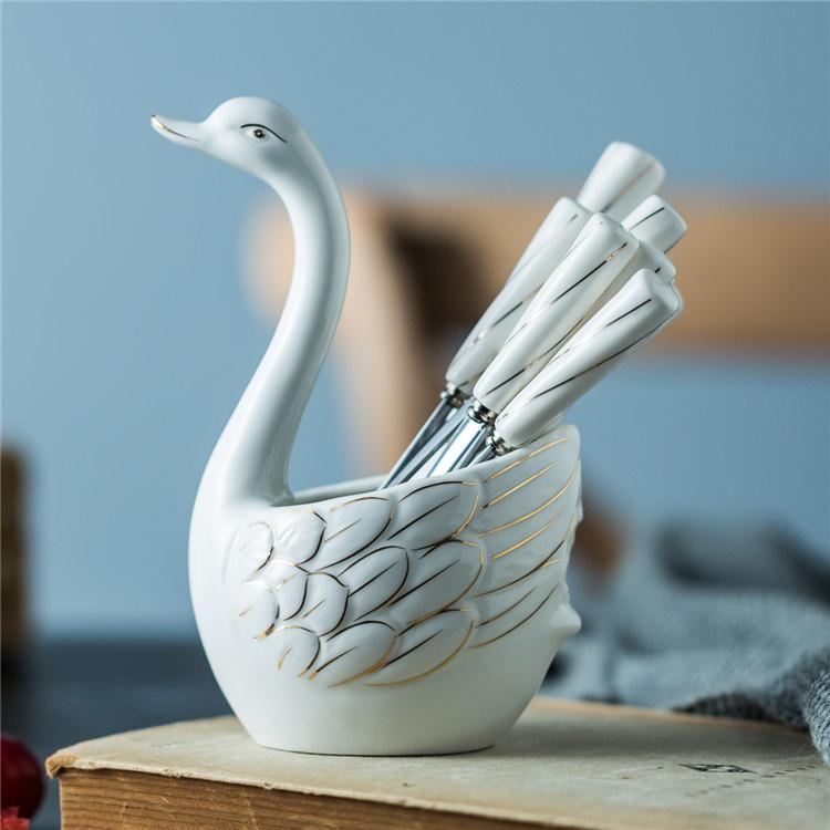 Вилка для фруктов из нержавеющей стали «Лебедь», керамическое ведро для хранения, емкость для хранения, металлическая палочка для фруктов, набор вилок для десерта «Дим Сам», набор столовых приборов