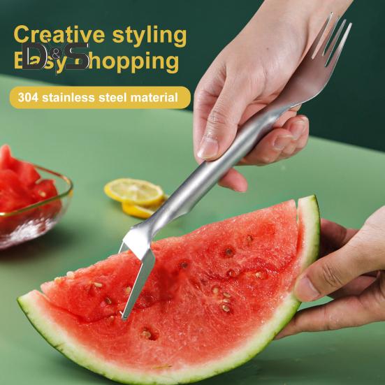 Вилка-ломтерезка для арбуза из нержавеющей стали 2-в-1, прочная, легко чистящаяся, резак для арбуза, аксессуары для дома