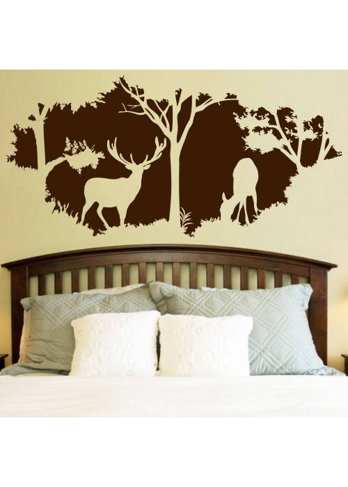 Виниловая интерьерная наклейка на обои В лесу (самоклеющиеся наклейки Олень Рога) матовая 1000х480 мм, Разные цвета