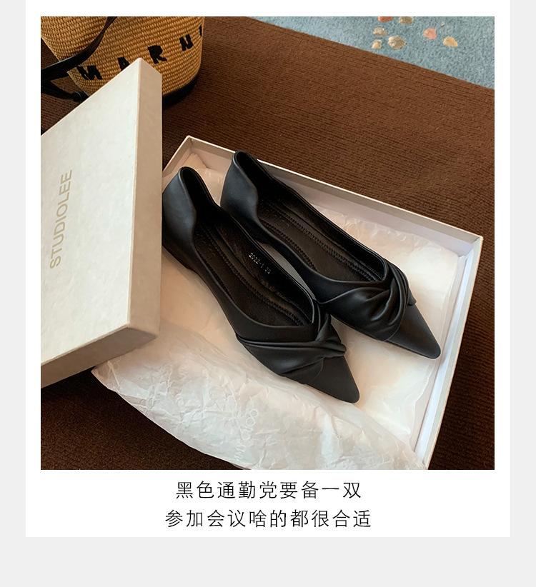 Виноградная мама лето мягкая кожа темперамент универсальный простой морщинистая поверхность острый носок мелкий вырез плоская подошва для работы одинарные туфли женские 40 чёрный