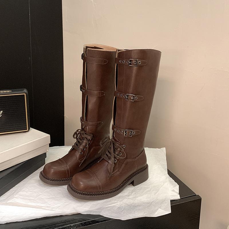Виноградная мама осень и зима новые модели, локомотивные miu модные изящные пряжки ремня ретро толстый каблук средняя и высокая труба рыцарские сапоги женские au 40