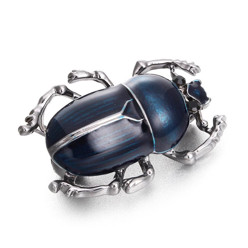 Винтажная брошь-жук со стразами - Модное универсальное украшение, булавка для одежды темно-синий
