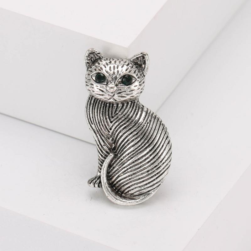 Винтажная брошь с милым котом для женщин, ювелирные изделия, подарок, брошь в виде животного, булавки, подарок серебряный