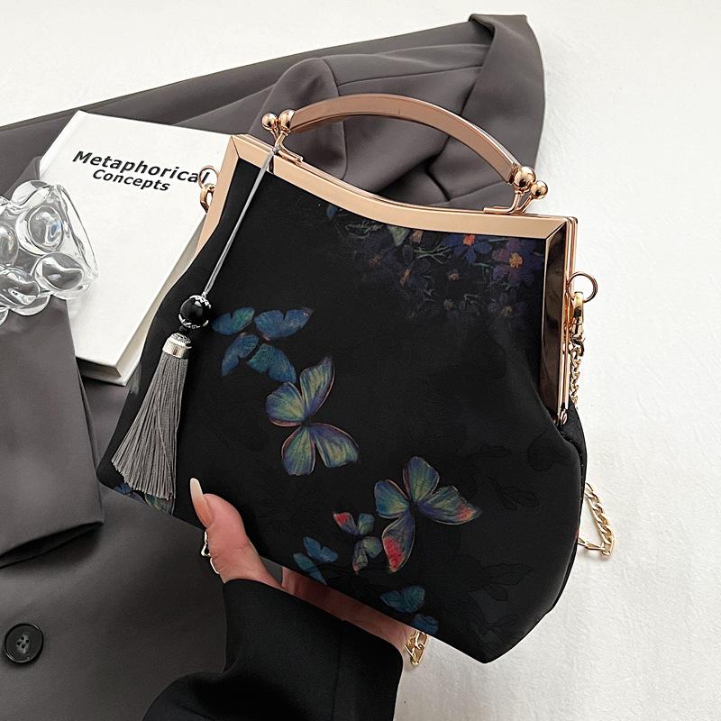 Винтажная вечерняя сумочка для женщин с замком-поцелуем, клатч с верхней ручкой, наплечный кошелек с цепочкой, маленькая сумочка через плечо с кисточкой, вечерняя сумочка для свадьбы, выпускного вечера