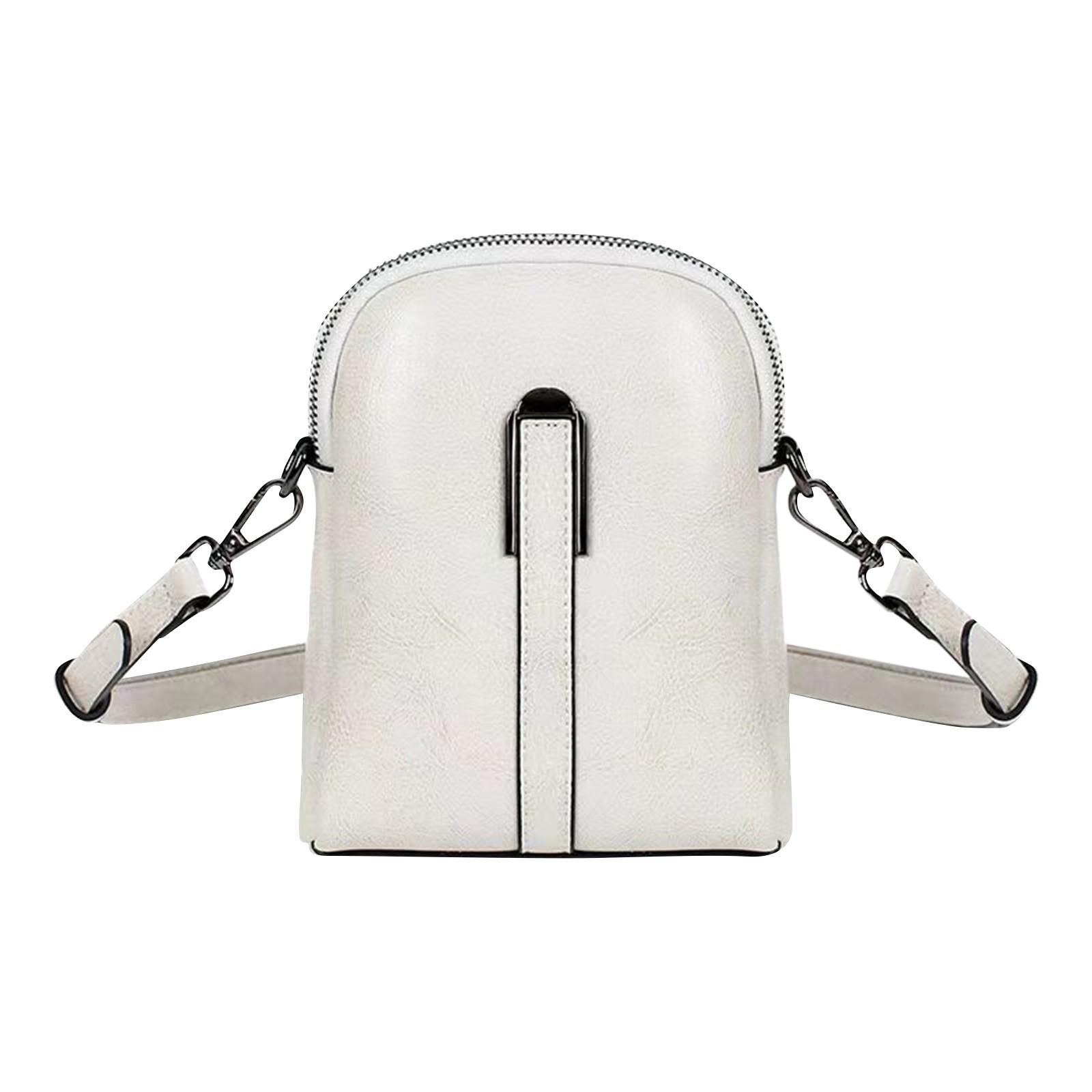 Винтажная вощеная коровья кожаная сумка через плечо для мобильного телефона с двойной молнией One Size белый