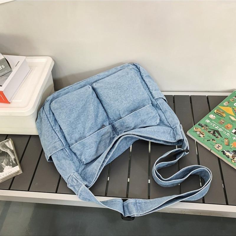 Винтажная выстиранная джинсовая сумка однотонная повседневная старая сумка через плечо персонализированная джинсовая сумка для покупок синий