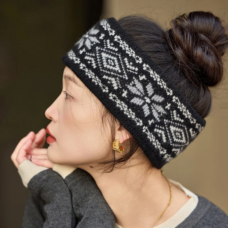 Винтажная вязаная повязка на голову, женская французская эластичная толстая мягкая повязка для волос, осень-зима, теплая защита ушей, полые аксессуары для волос