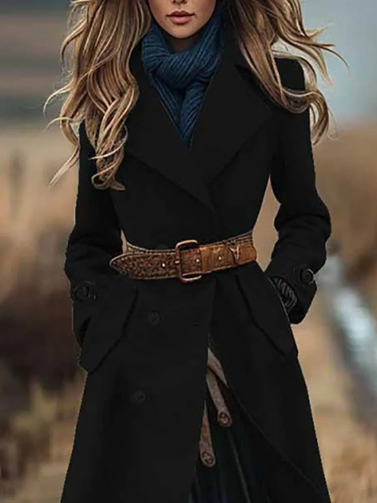 Винтажная женская прямая куртка с лацканами, новая зимняя модная однотонная шерстяная куртка с карманами, элегантная однобортная теплая верхняя одежда