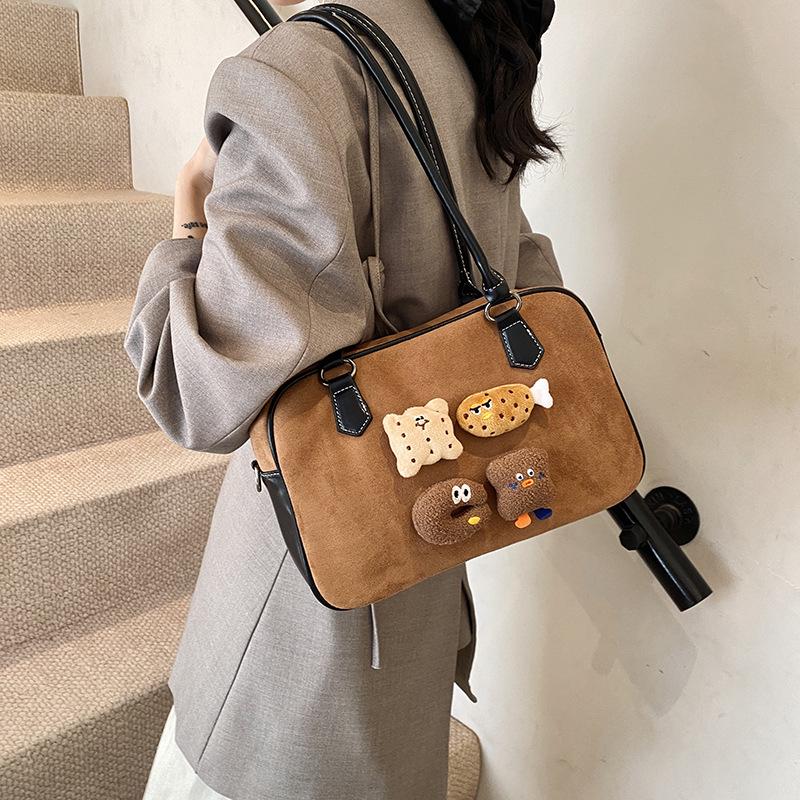 Винтажная женская сумка на плечо из матовой замши большой вместимости - Универсальный осенне-зимний стиль коричневый
