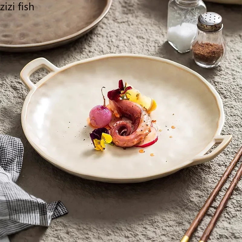 Винтажная керамическая двойная тарелка для ушей, креативная тарелка для салата с узором молотка, десертная тарелка для суши, молекулярная кухня, специальная посуда