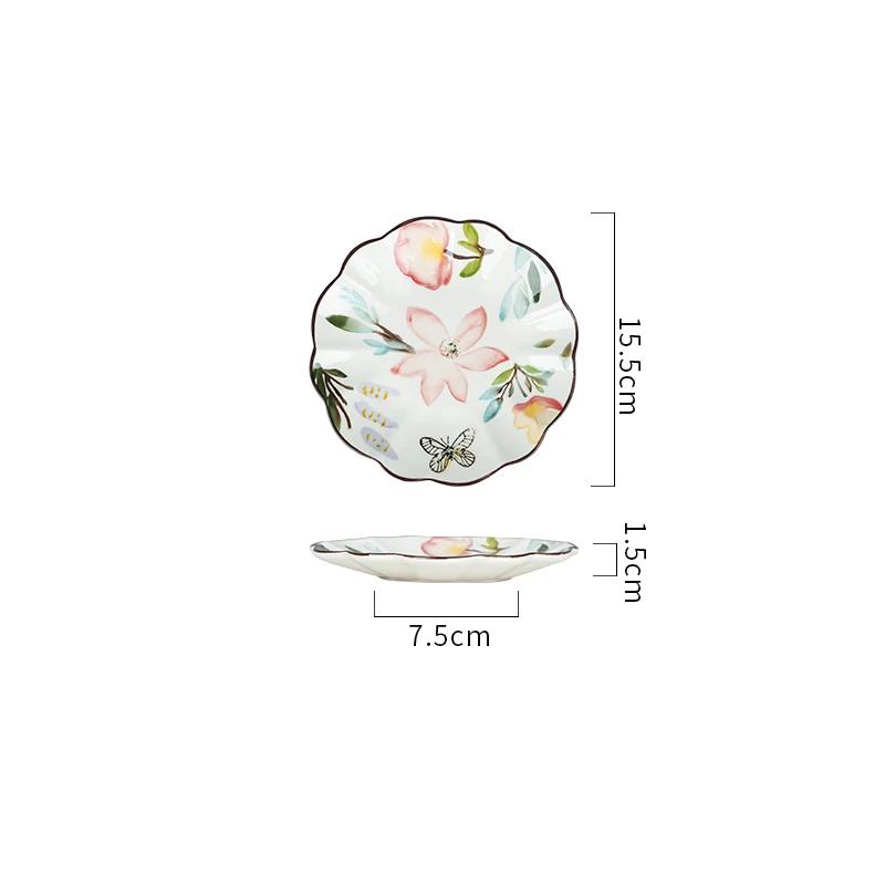 Винтажная керамическая тарелка с нарисованными вручную цветами, изысканная тарелка для десерта и фруктов для послеобеденного чая, вкусные блюда для дома, обеденные тарелки