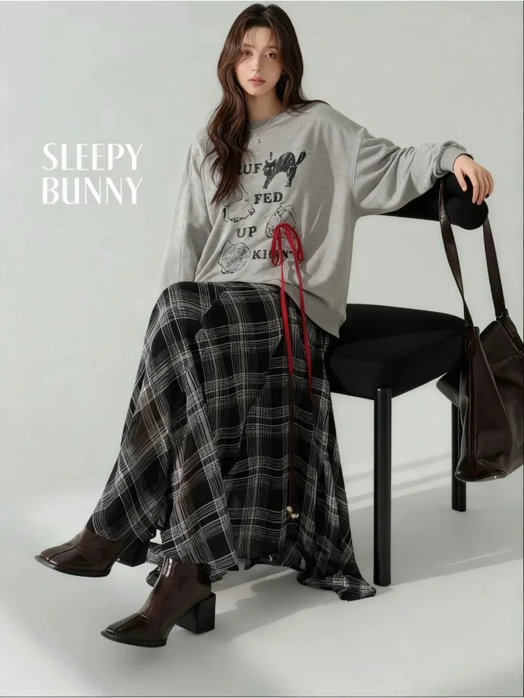 Винтажная клетчатая шифоновая макси-юбка с 12 панелями, юбка трапециевидной формы с неровным подолом, осенняя струящаяся длинная юбка в клетку в стиле ретро, женская элегантная стильная