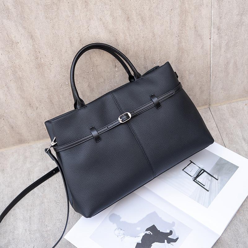 Винтажная кожаная женская сумка, новая вместительная сумка-платина для通勤, женская сумка через плечо, портативная сумка-тоут. чёрный