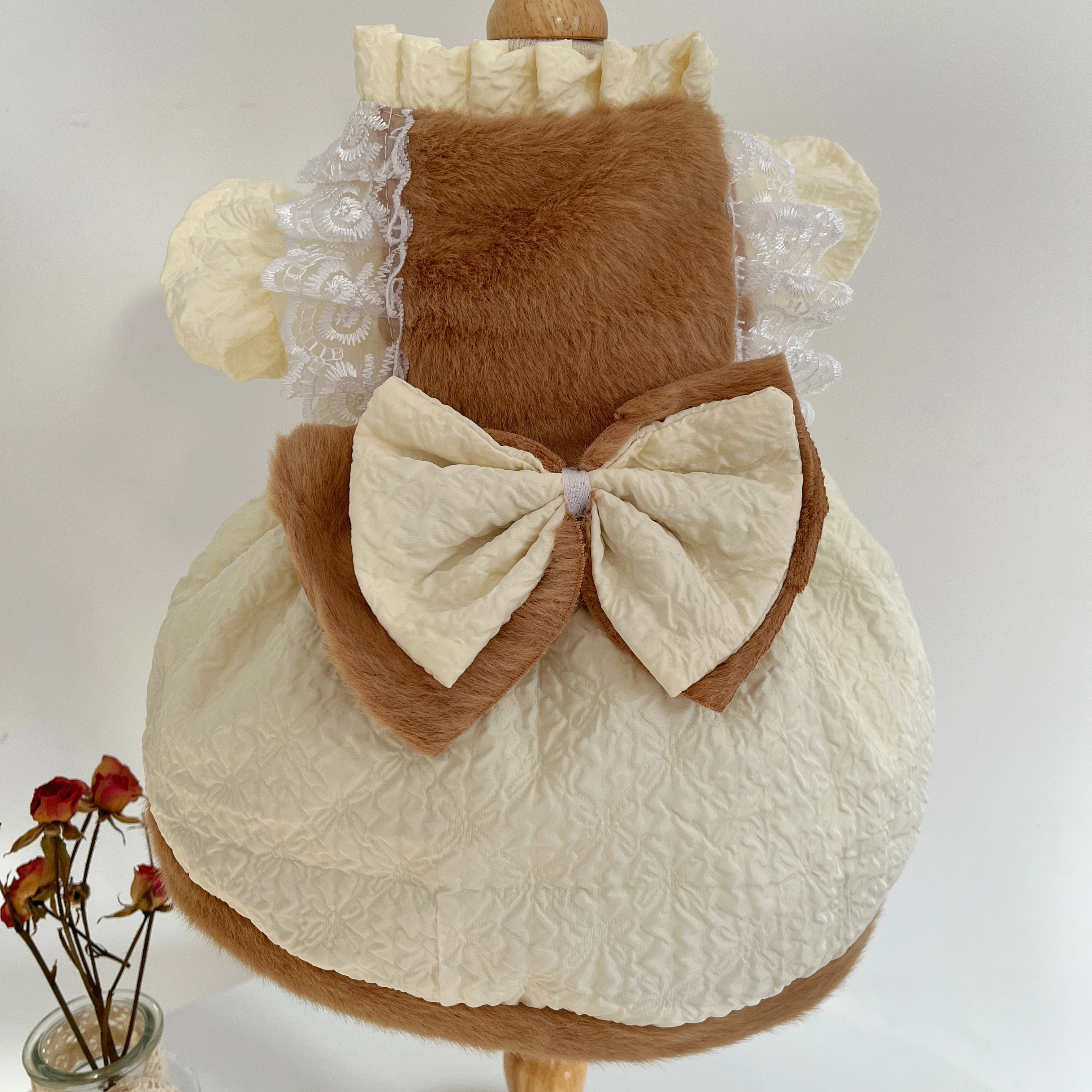 Винтажная модная меховая хлопковая теплая одежда для собак хаки бежевая однотонная осенне-зимняя плотная одежда для маленьких и средних со...