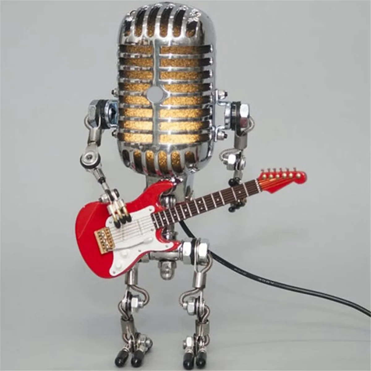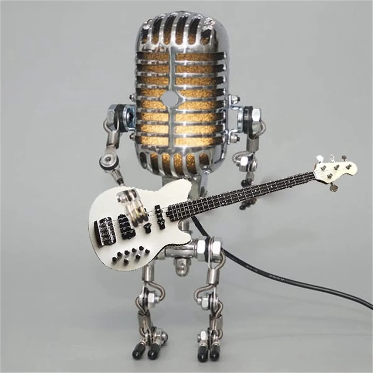 Винтажная настольная лампа-робот с микрофоном в стиле ретро, винтажная Сенсорная лампа-робот с диммером, настольная лампа, желтая