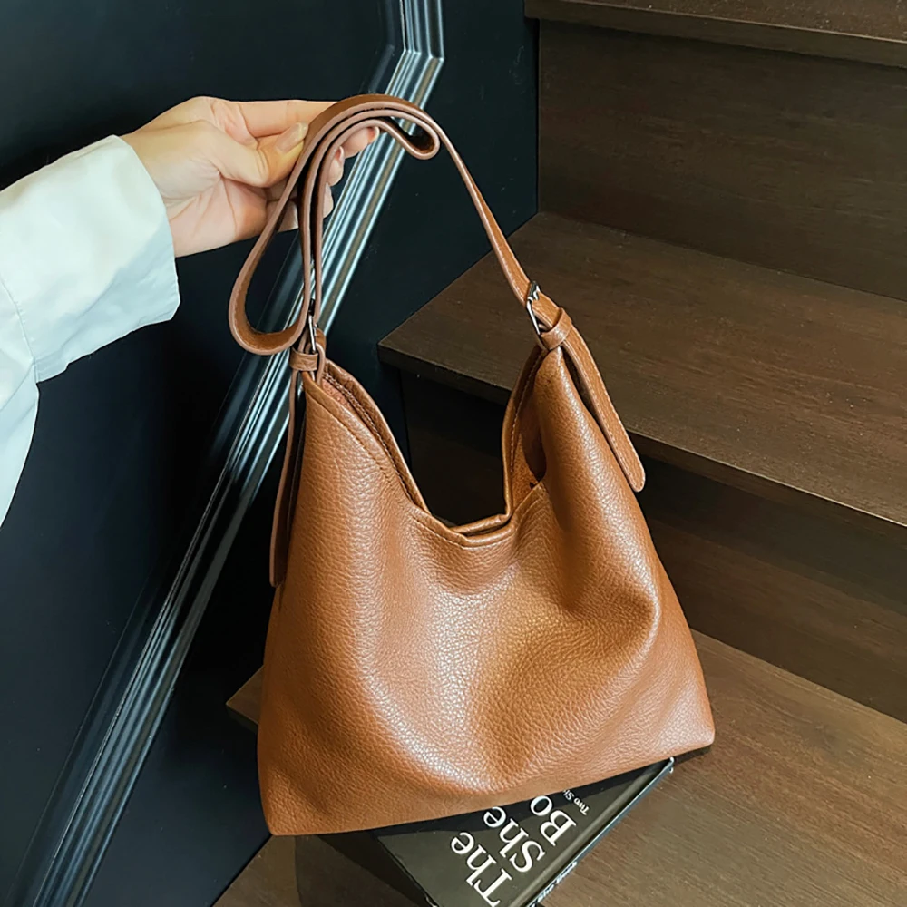 Винтажная однотонная сумка через плечо с узором личи, женская сумка через плечо в корейском стиле, большая вместительная сумка-тоут, высококачественная мягкая сумка на одно плечо