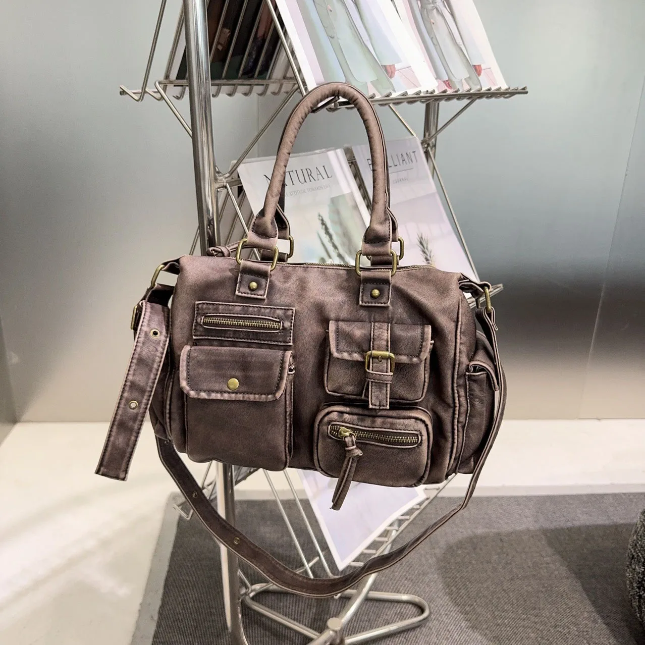 Винтажная осенне-зимняя повседневная сумка на плечо с карманами в стиле ретро, мотоциклетная сумка-тоут из искусственной кожи, женская сумка через плечо для поездок на работу