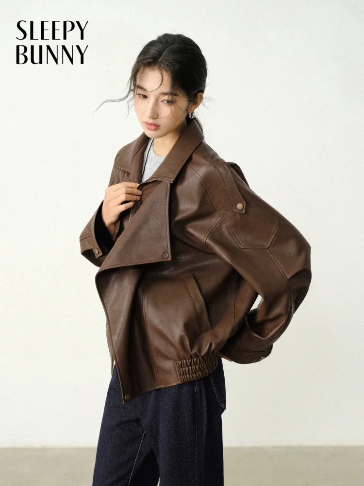 Винтажная повседневная кожаная куртка женская облегающая моторная короткая куртка осенняя модная верхняя одежда ретро на молнии с лацканами в байкерском стиле наряд