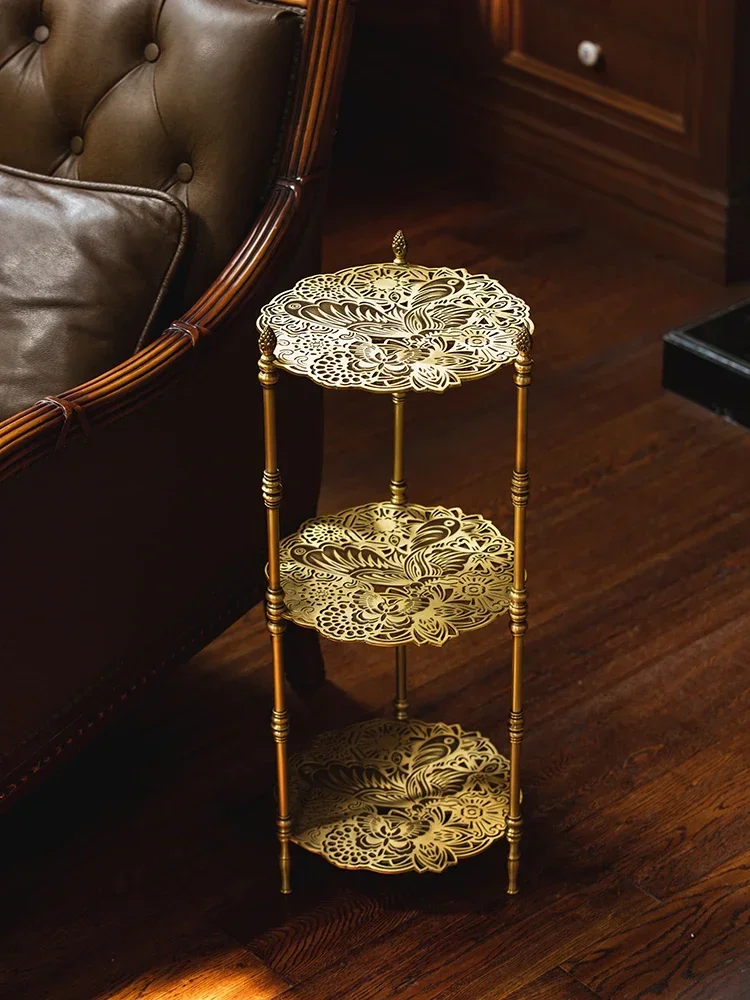 Винтажная резная полка для хранения из латуни ABC, приставной столик для гостиной, антикварная полка для цветов, трехслойная полая полка для хранения, краевой столик