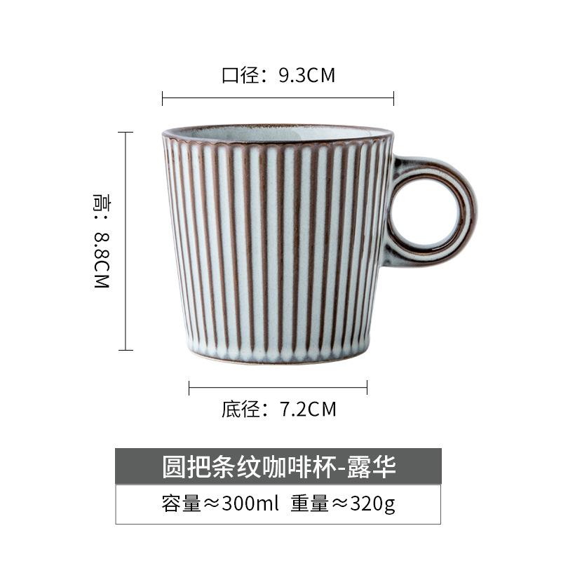 Винтажная рельефная полосатая керамическая чашка в стиле ретро, чашка для латте, чашка для кофе, глазурь для обжига в печи, 300 мл 201-300ml