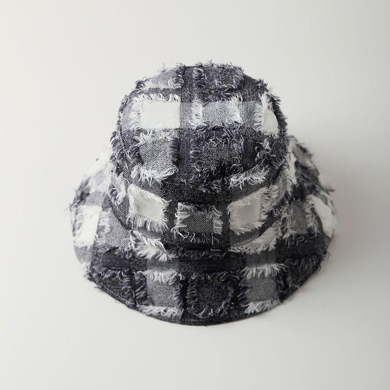 Винтажная рыбацкая шляпа в клетку с дизайном Raw Edge, женская японская шляпа-ведро в стиле хип-хоп, повседневная уличная шляпа от солнца, модная 56-58cm серый