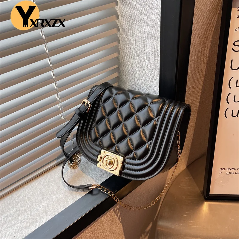 Винтажная седельная сумка в клетку со стразами, женская сумка через плечо на цепочке, осенняя маленькая сумка через плечо, однотонная сумка-...