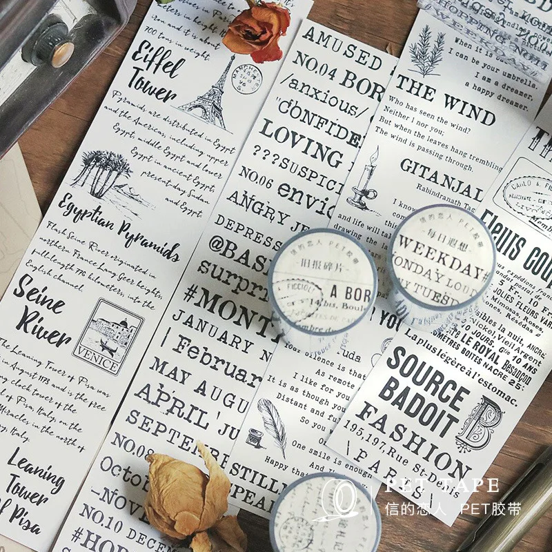 Винтажная серия слов Прозрачная черная лента для журнала домашних животных клейкая самодельная наклейка для скрапбукинга этикетка японск...