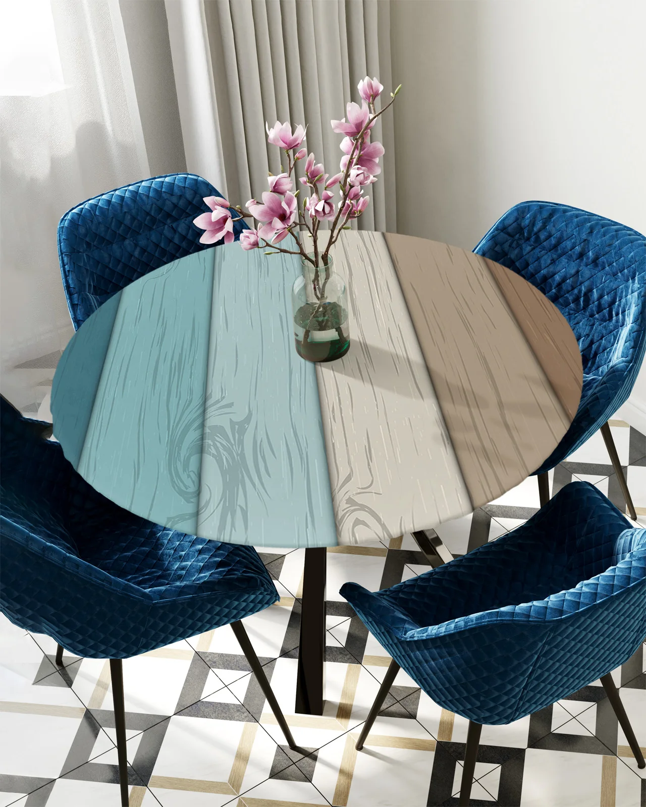 Винтажная синяя, зеленая, коричневая, градиентная круглая эластичная облегающая скатерть под дерево, Защитная ткань, водонепроницаемая облегающая скатерть