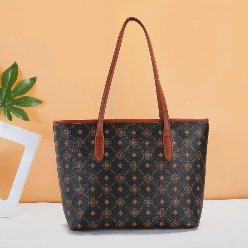 Винтажная сумка-тоут большой вместимости женская универсальная простая повседневная на плечо подмышку женственность чёрный