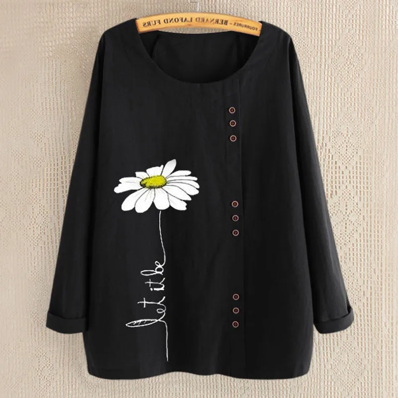 Винтажная хлопковая льняная рубашка с длинными рукавами и цветочным принтом, Свободная Повседневная блузка, черная, розовая, зеленая, синяя...