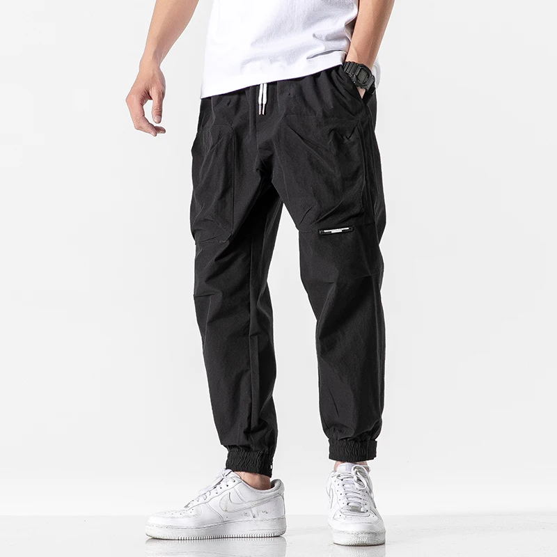 Мужской летний однотонный топ с круглым вырезом и короткими рукавами, свободными карманами L чёрный