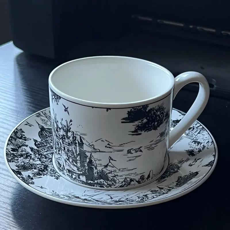 Винтажная элегантная керамическая кофейная чашка и блюдце, шикарный цветочный узор, изысканная чашка для воды, домашний поднос для десерта и послеобеденного чая, подарочная коробка