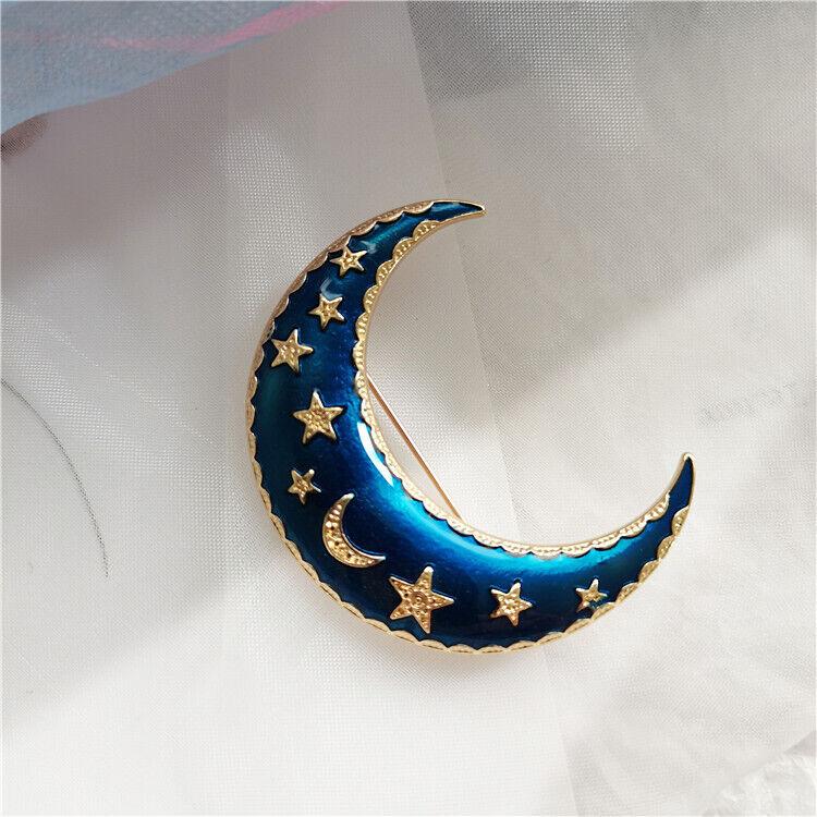Винтажная эмалированная брошь в стиле арт-деко, голубая луна, значок на булавке, подарок