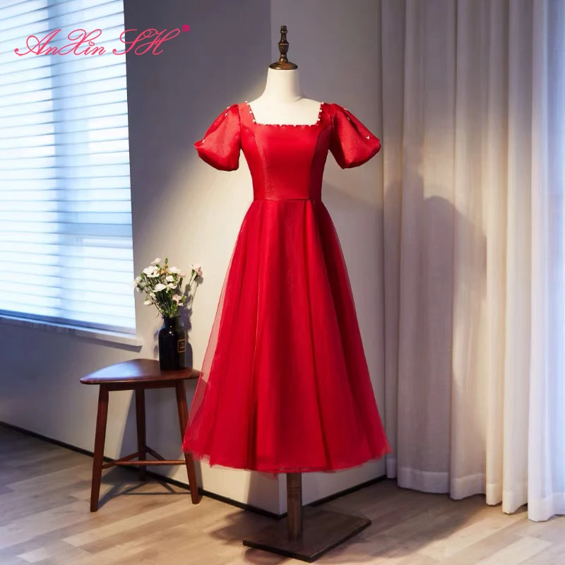 Винтажное атласное и кружевное вечернее платье принцессы AnXin SH винтажное милое платье с бисером и жемчугом с коротким рукавом с бантом ТРАП...