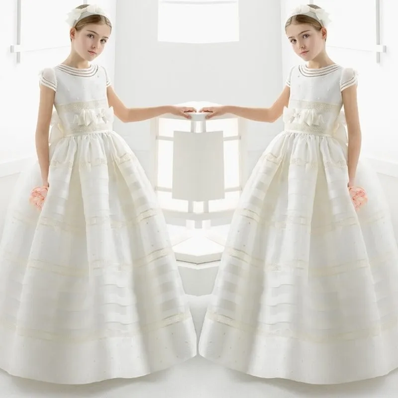 Винтажное бальное платье; Платья для первого причастия для девочек; Атласное платье в стиле ампир с бантом в пол; Платья с цветочным узором д...