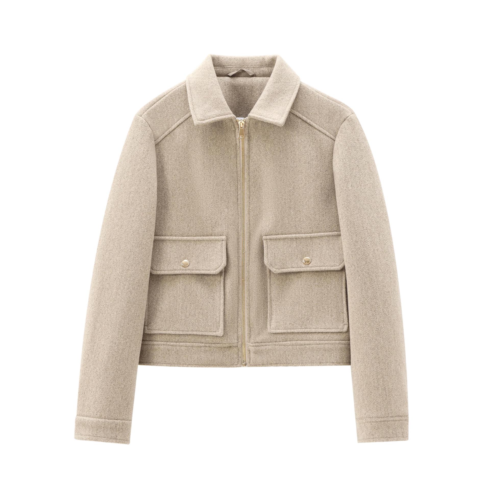 Винтажное женское шерстяное пальто на молнии с двойными карманами, Осень/Зима 2024 Extra Small хаки