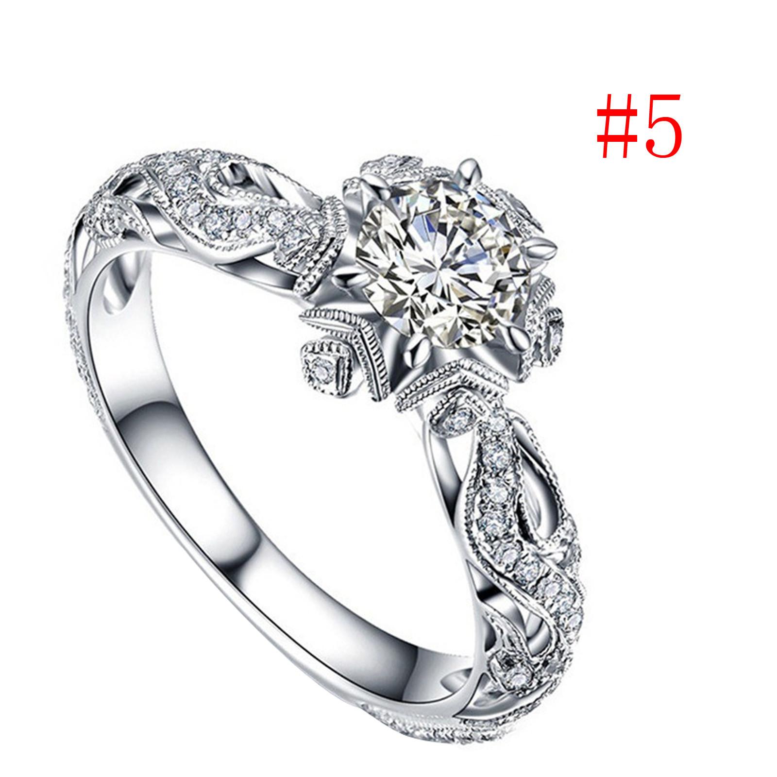 Винтажное кольцо с цирконом, женское кольцо на указательный палец, модное кольцо с кристаллами в форме цветка 5 серебряный