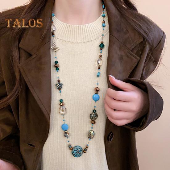 Винтажное ожерелье из бисера с разноцветными камнями, приятное для кожи, многослойное женское ожерелье, ювелирные изделия, подарки